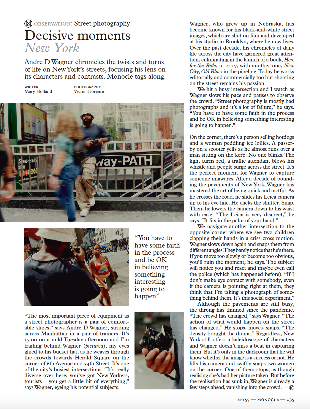 Andre D Wagner chronicles the twists and turns of life on New York’s streets, focusing his lens on its characters and contrasts. Monocle tags along.